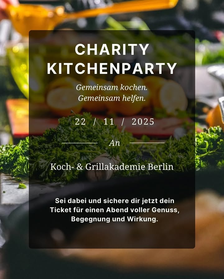 Mit unserer #Kitchenparty laden wir gemeinsam mit der Koch- & Grillakademie Berlin zu einem besonderen Abend ein: Kochen, Genießen & Gutes tun.
